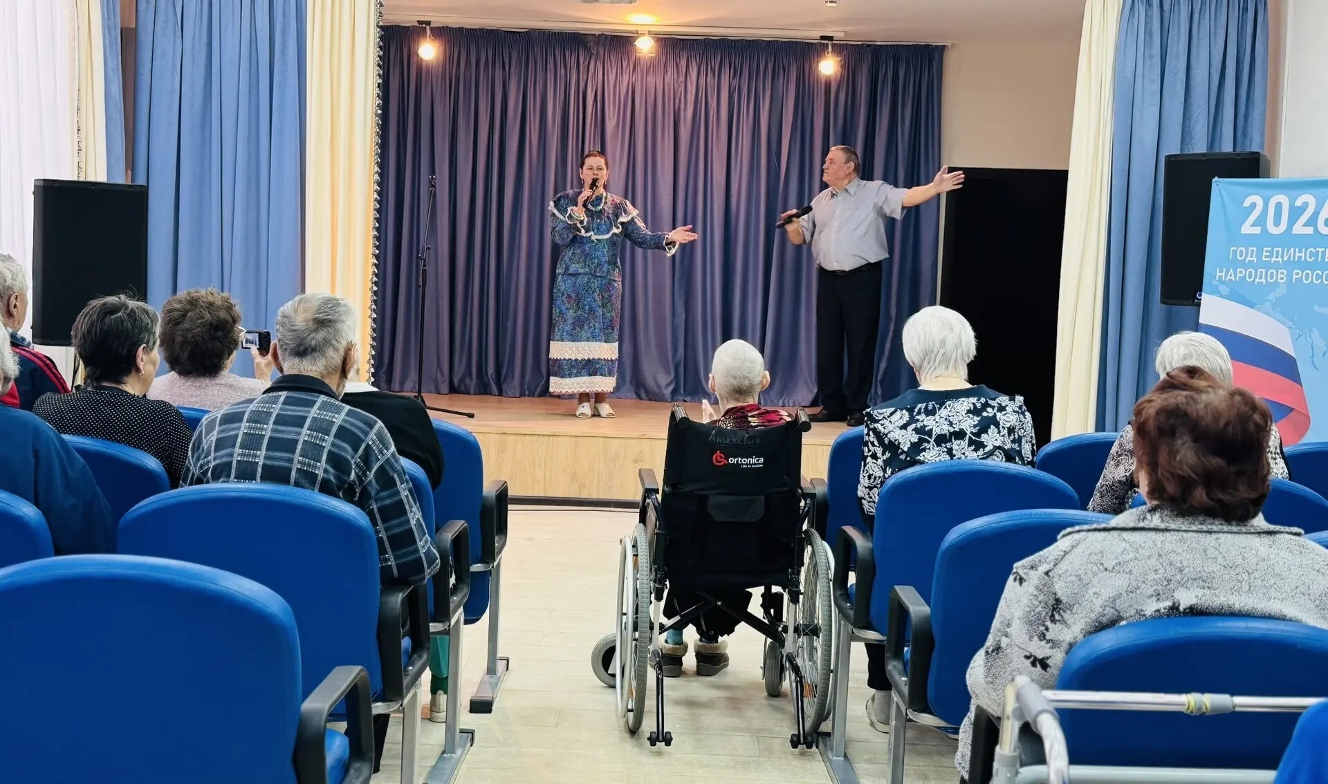 Накануне в Пансионате царила особая атмосфера — звучали задушевные песни в исполнении семейного дуэта Александра и Ларисы Шатровых из МКУК «Новоалександровский КДЦ».